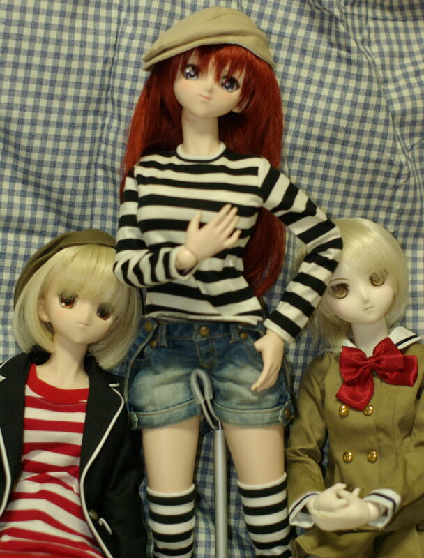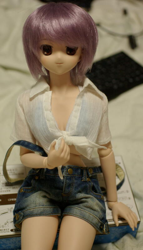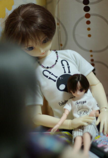 前々から、「男子SDだったら、凌(ピュアスキンバージョン)だよなあ」と思っていたので、かなりびっくり。 背中を押してくれたたけもとさんに感謝ですな。 ちょっと写真の腕がいまいちなので、あまり可愛らしく撮れませんでしたが…… 本物は、想像通り(以上に?)可愛いです。 ずっと、「とらいあんぐるハートの相川真一郎は、きっと凌のように女の子にも見えてしまう少年なんだろうなあ」と思っていたのですが、やはり実物も真一郎に見えるので、今のところ名前は「真一郎(仮名)」で。 しかし、SDサイズがうちに来るのは初めてなので、洋服も無ければ靴も無い、ウィッグも無いというナイナイづくし。 ドルパ21でだいぶ着替えも揃えてきたので、やっとワードローブも揃ってきました。 しばらくの間、女の子向けのショーツにワイシャツという、ある意味危ない恰好だったしなあ……(笑) 今きているのは、たけもとさんから「お迎え祝いに」と頂いてしまった、VジーンズとTシャツ。 こういう普段着っぽい服が欲しかったので、本当に大助かりです。 このまま、真一郎(仮)のまま定着してしまいそうだなあ……(笑)